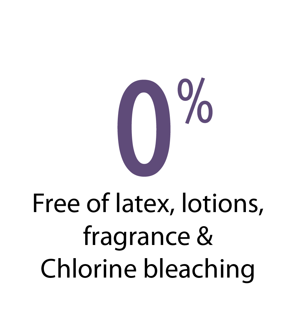 0% Free of Elemental-Chlorine Bleaching, Latex* Lotions & Dyes